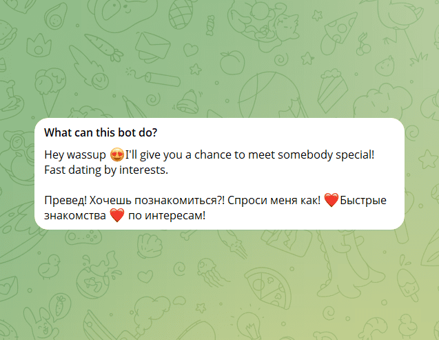 позволяют управлять списком контактов. Интерфейс доступен на русском и английском языках, что делает его удобным для широкой аудитории. Однако стоит отметить, что бот ориентирован на более легкие знакомства и может не подойти тем, кто ищет серьезные отношения.