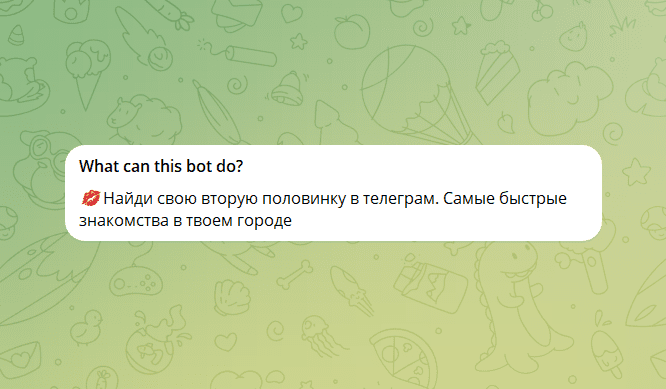 Отдельно заметен слой пользователей из регионов, где классические дейтинговые приложения работают хуже — Telegram-бот воспринимается как удобная альтернатива. Часть анкет ориентирована на случайные разговоры или виртуальный флирт, поэтому при поиске серьёзных отношений нужно быть избирательным.